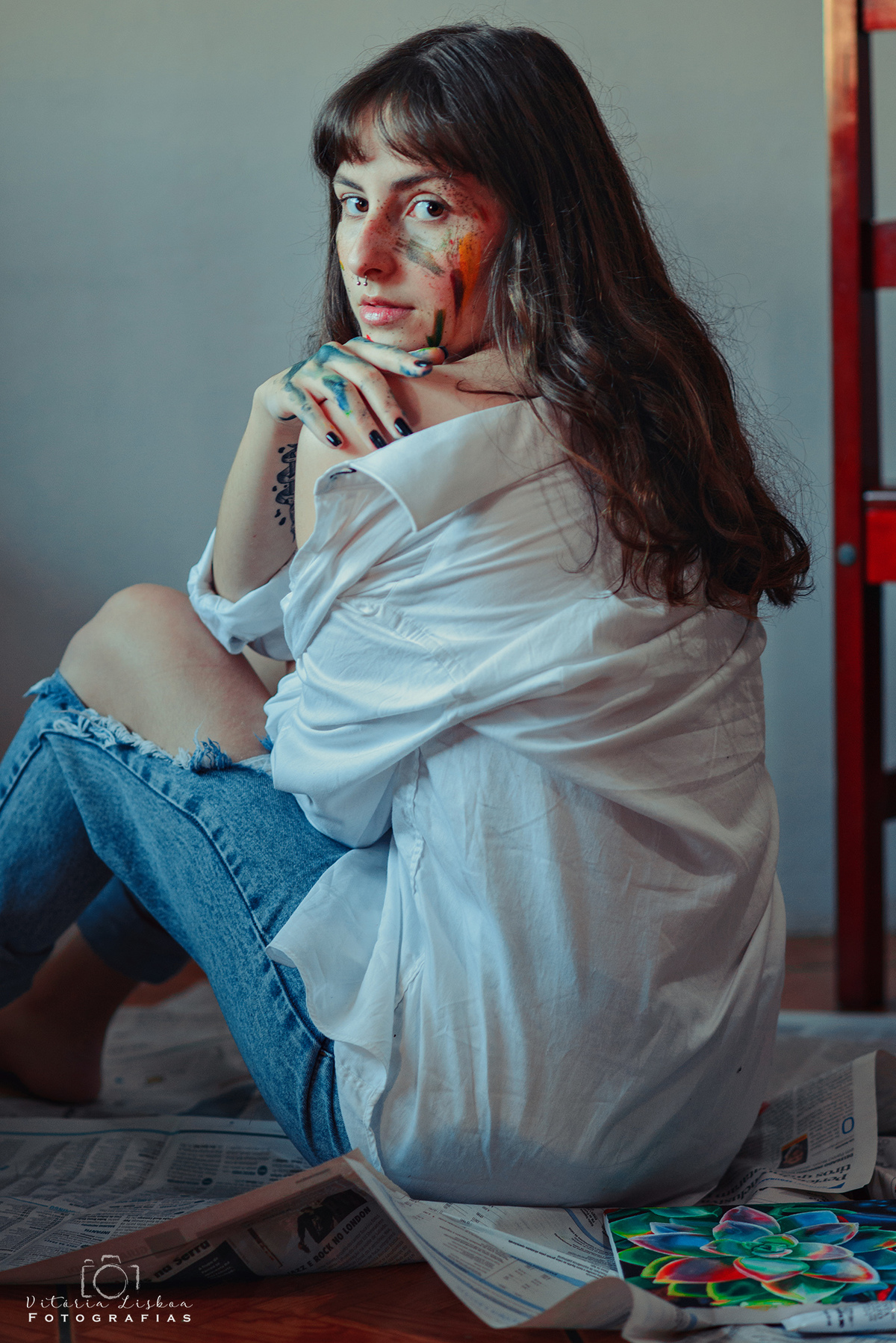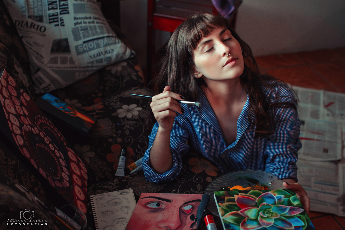 Já fazia algum tempo que eu buscava fazer um ensaio assim, bem artístico. Eu amooooo trazer os hobbies de cada pessoa para dentro da fotografia, além da leveza e sentimento. Foi então que conheci a Rayssa através de indicações nas redes, chamei ela e mostrei algumas referências para ela conseguir visualizar minhas ideias, ela adorou e topou de cara. Amei o resultado da mistura da arte dela com a minha, A Rayssa vem de uma família bem artística, ela desenha desde sempre, e a poucos meses vem se aventurando nas pinturas em tela.